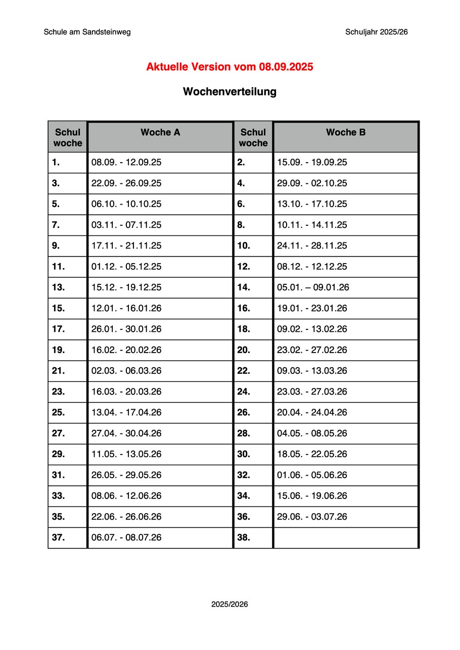 A/B-Wochen Schuljahr 2025/2026