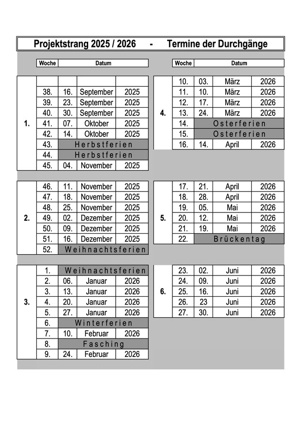 Der "Projektstrang" wird als wesentlicher Bestandteil des Schulprogramms für alle Klassenstufen an unserer Schule angeboten.