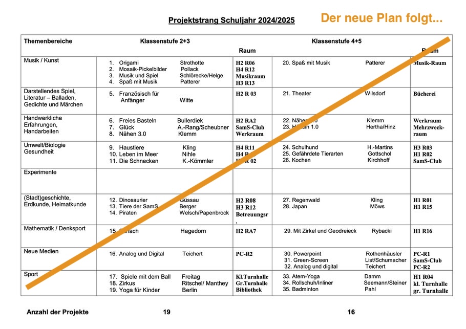 Die Klassen 2+3 besuchen ihre Projekte in der 1. und 2. Unterrichtsstunde, die Klassen 4+5 in der 6. und 7. Unterrichtsstunde.
